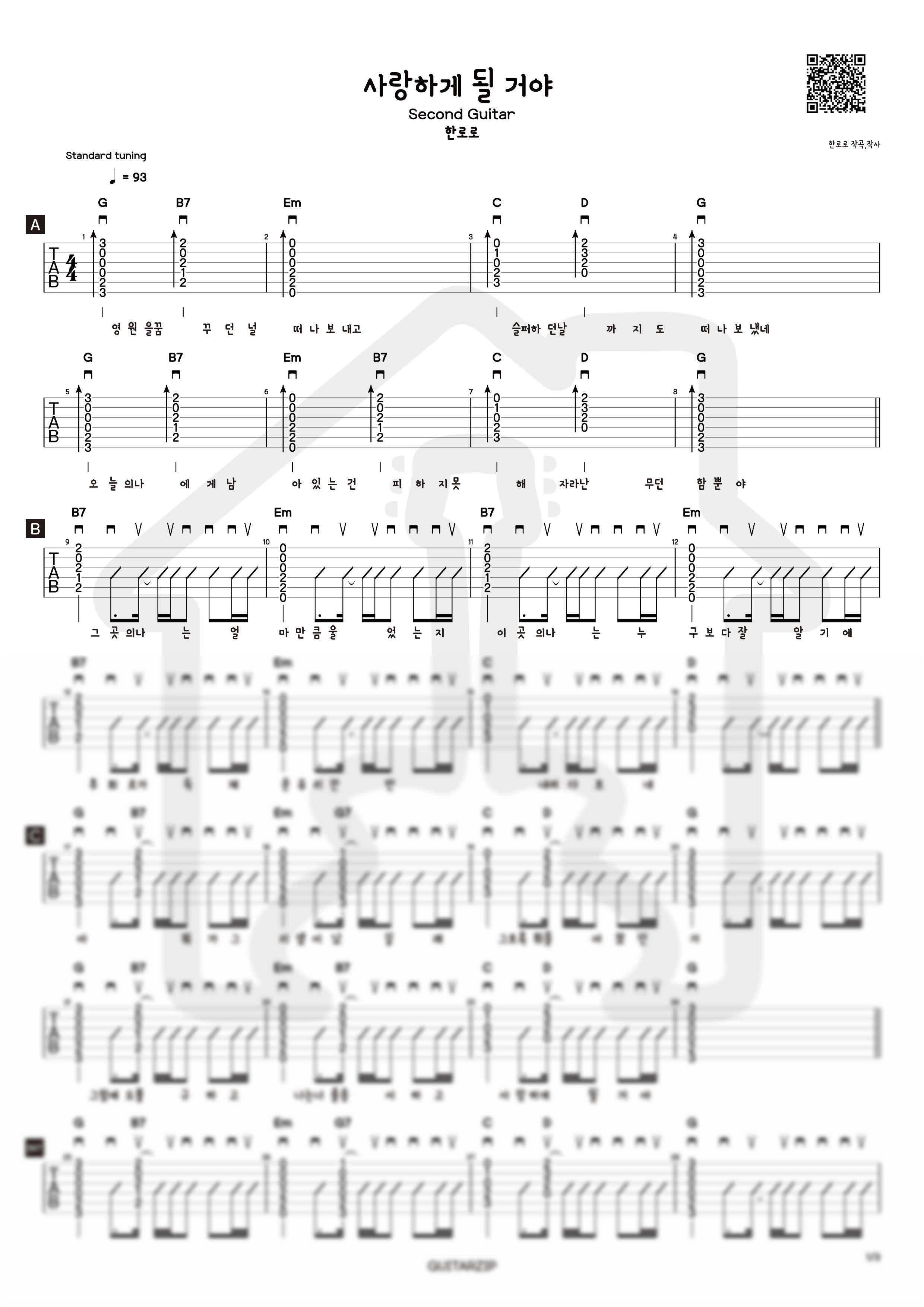 사랑하게 될 거야 - 한로로 (Second ver.) TAB악보