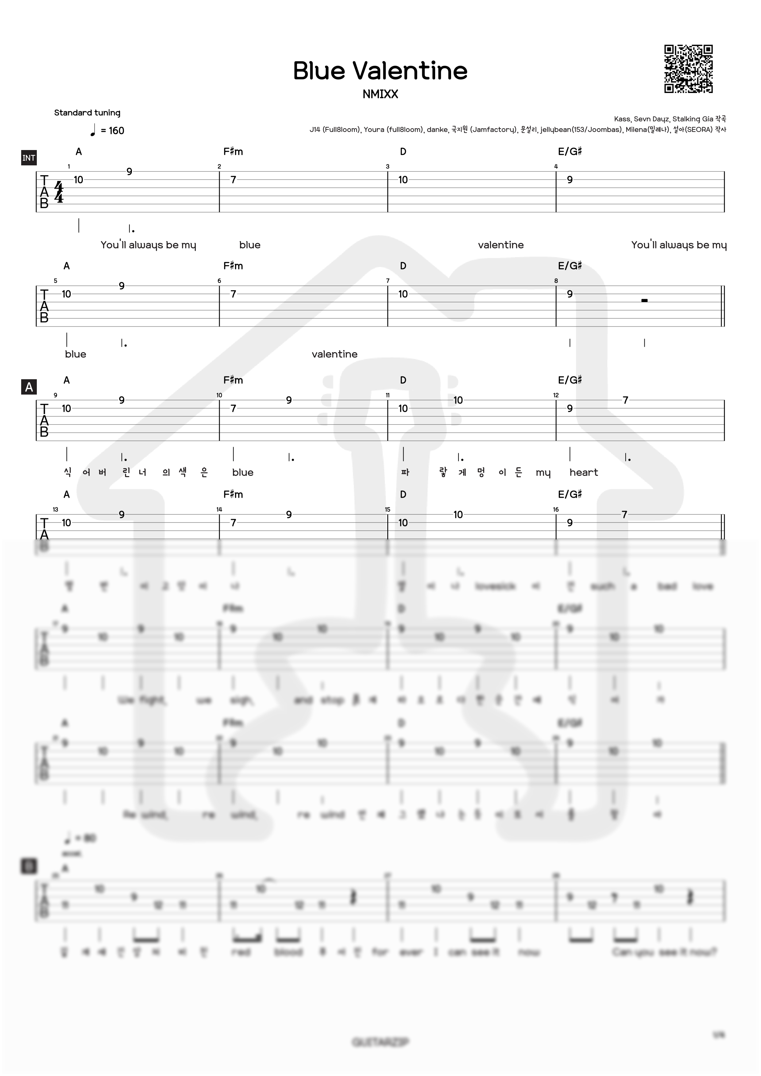 Blue Valentine - NMIXX [일렉기타 TAB 악보]