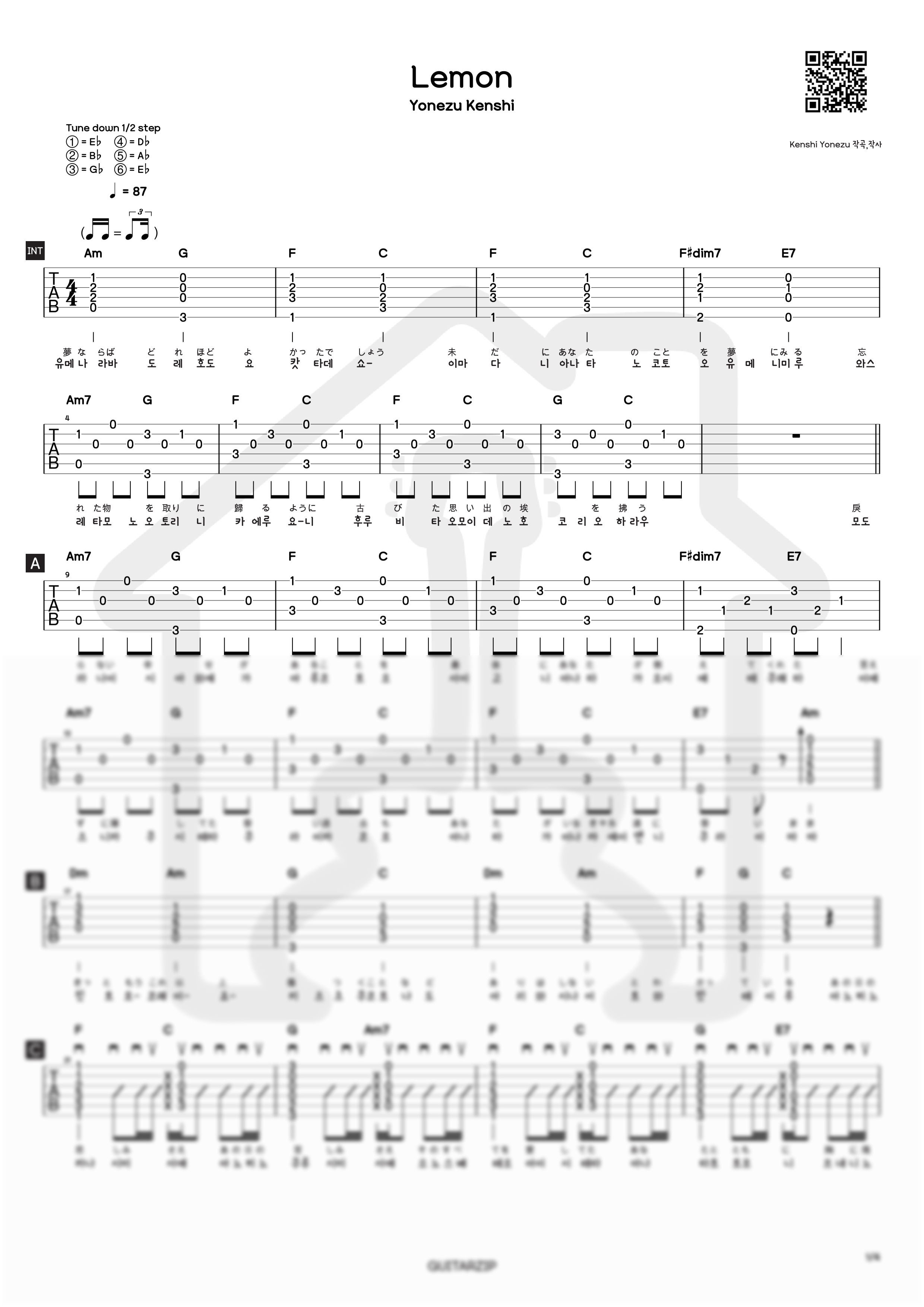 🍋 Lemon (언내추럴アンナチュラル OST) - 요네즈 켄시 (米津玄師) [TAB악보 Acoustic Guitar Cover]