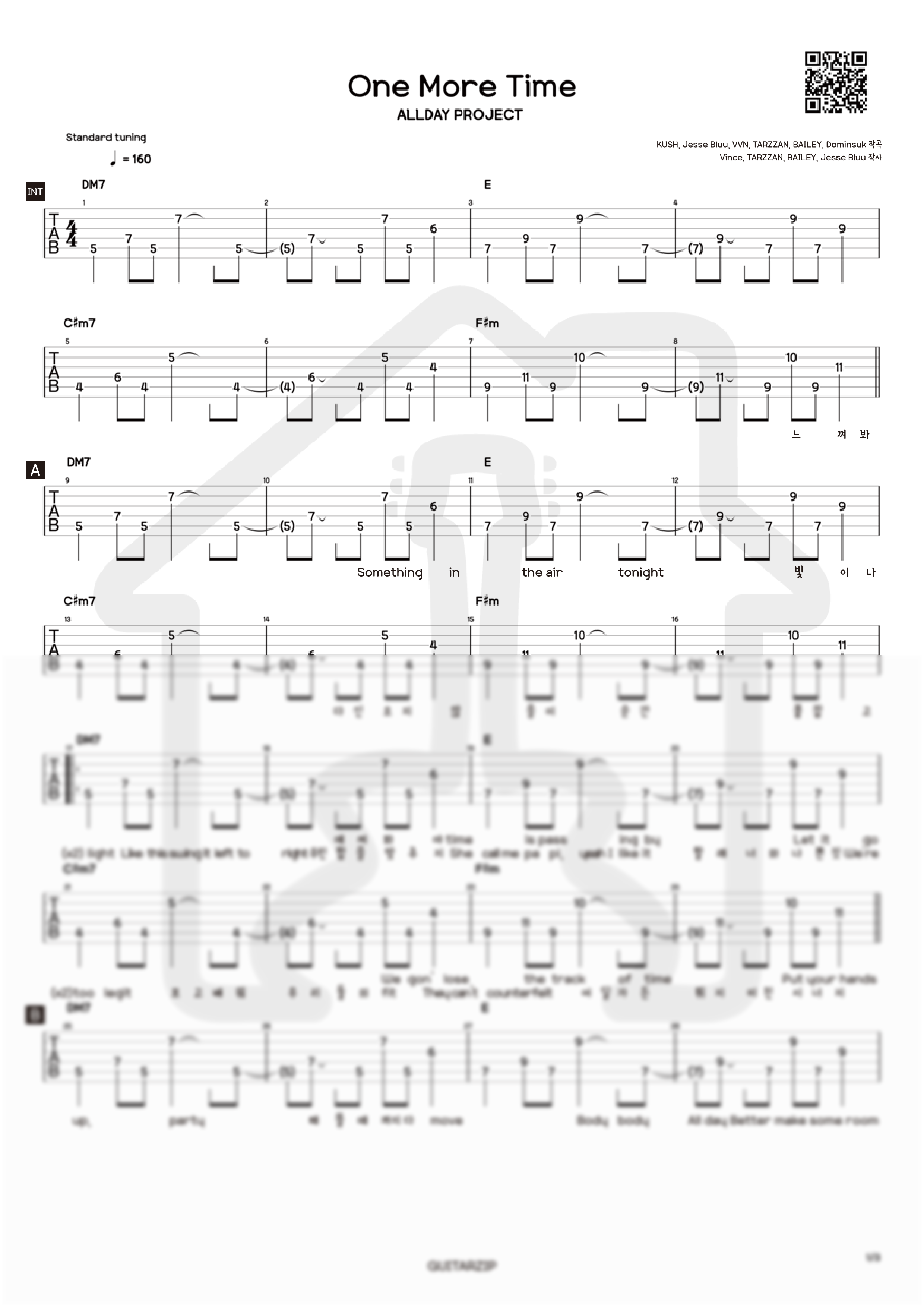 ALLDAY PROJECT - ONE MORE TIME 일렉기타 TAB악보입니다.