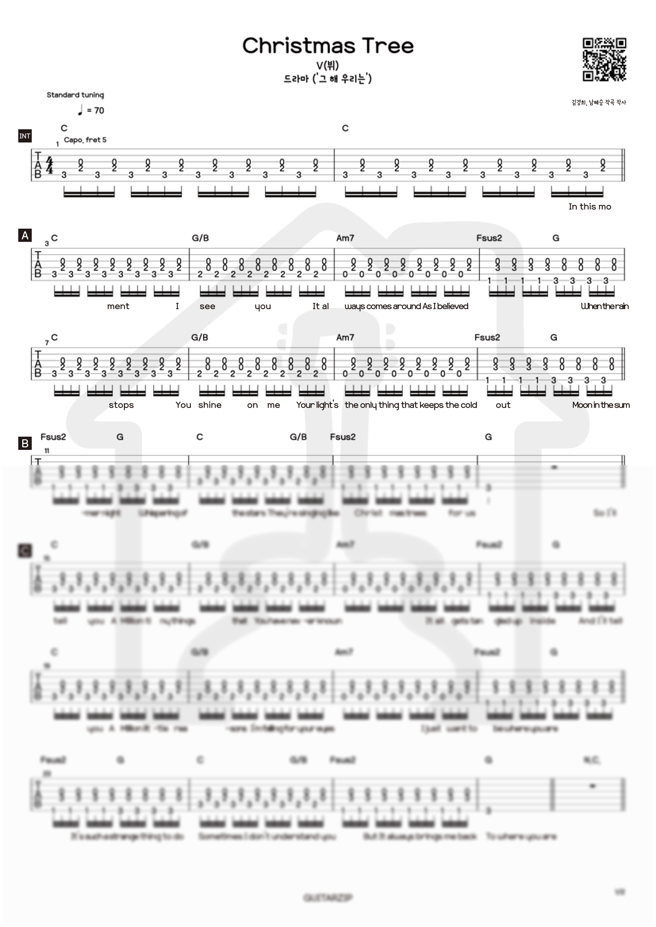 Christmas Tree - V (BTS) [Acoustic 기타 TAB] 드라마 그 해 우리는 OST Part 5