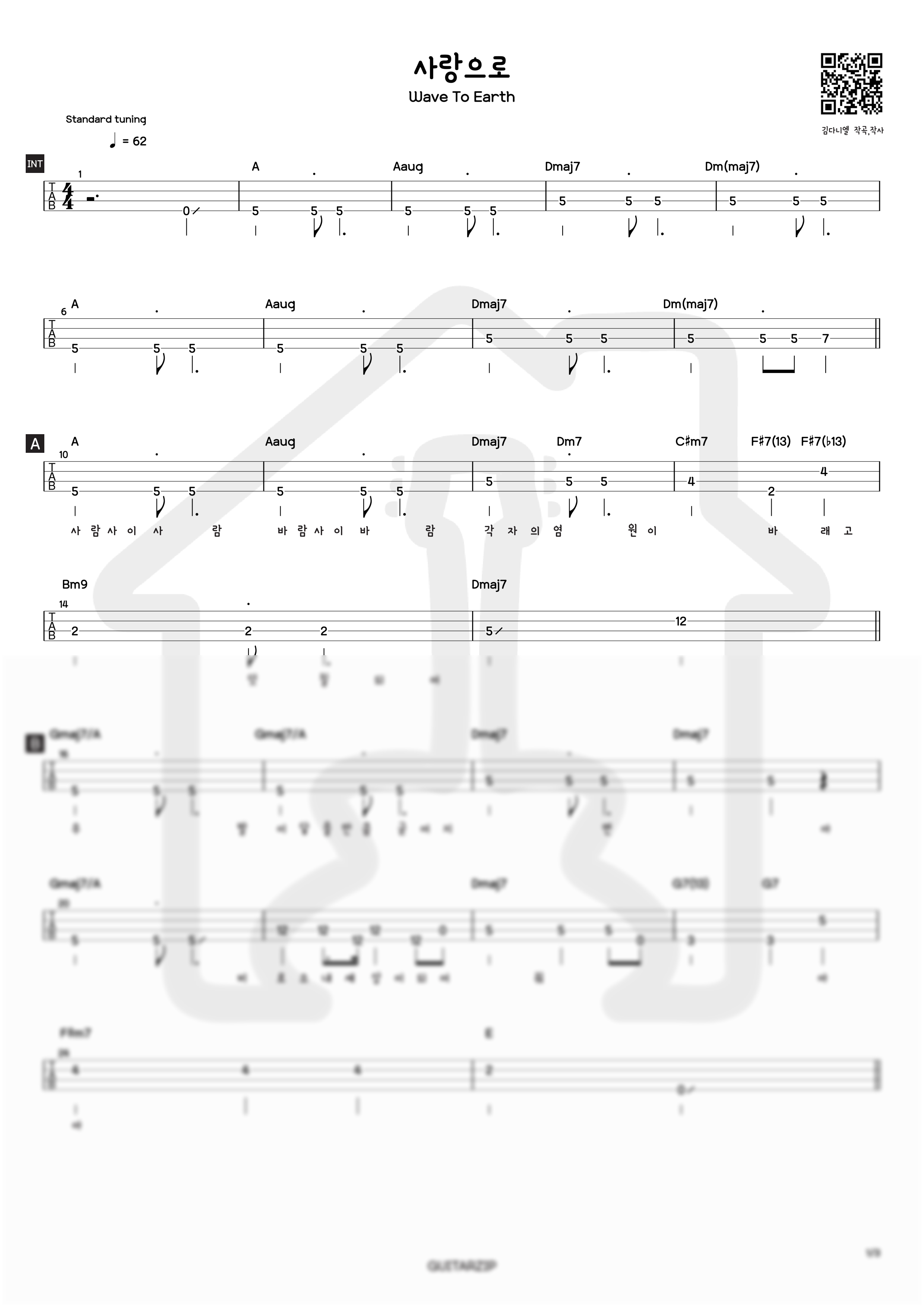 사랑으로 - wave to earth [TAB] Bass [★★☆☆☆] 베이스 라인이 예쁜 노래입니다. 즐거운 연주 되세요!